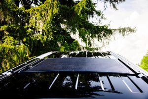 Our solar module comes on a stylish black powder-coated aluminum sheet. Thanks to its clean design and minimal installation height, it fits seamlessly into your van and you still stay under the magical 2-meter limit.