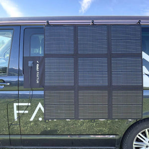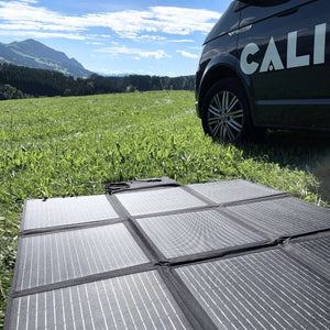 Experience the freedom of solar energy on the go with the CALIFAKTUR 200Wp solar bag - simple, compact and flexible. Thanks to its easy installation and robust design, the solar bag is perfect for all outdoor adventures. With 200 watts of peak power, the CALIFAKTUR solar bag offers enough energy to charge batteries and operate electronic devices. The solar bag is compatible with every vehicle model and can be flexibly aligned depending on the position of the sun. The three piping stones included in the package enable the side attachment to the original VW California piping rail. The robust and weather-resistant coating guarantees a long service life and reliable performance. Some of our customers use the solar bag as an optional add-on to their CALIFAKTUR 155 Wp solar module.